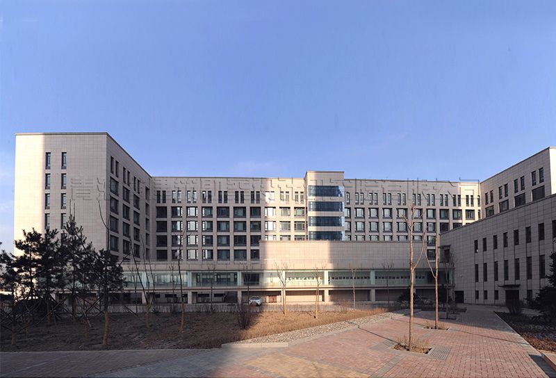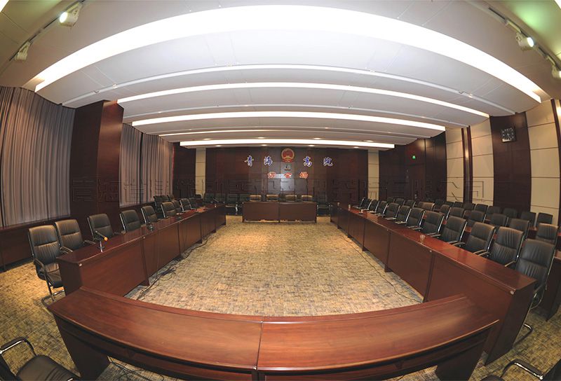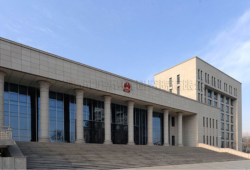青海省高級人民法院審判辦公樓工程位于西寧市城北區(qū)柴達木路與西站二巷道路交叉口西南角,總用地面積60.27畝,用地內(nèi)布置審判辦公樓、法官培訓(xùn)中心、干警高層住宅樓及配套鍋爐房等項目。審判辦公樓總建筑面積32671.00m2,地上層數(shù)為8層,地下1層,建筑高度31.80m。主體建筑分為辦公用房和審判用房兩個部分。建筑一層及局部地下室設(shè)汽車庫、設(shè)備用房、檔案室和羈押用房。辦公部分二至八層為法院行政公共用房,其中二層設(shè)門廳、多功能會議廳,頂層設(shè)大會議室、視頻會議室、閱覽室、健身房等,其他樓層設(shè)辦公及部門會議室。辦公用房設(shè)置滿足規(guī)范《黨政機關(guān)辦公用房建設(shè)標準》的要求。依據(jù)《人民法院法庭建設(shè)標準》審判用房布置在辦公樓東南側(cè),相對獨立,其中設(shè)大法庭1個,中法庭2個,小法庭8個,另設(shè)立案大廳、信訪大廳、候?qū)彺髲d及法官和參與庭審活動的律師、證人、公訴人等人員的配套服務(wù)用房。審判法庭布置重點解決法庭內(nèi)各種流線的要求,即法官通道、羈押通道、旁聽觀眾通道,三者獨立又互相聯(lián)系的關(guān)系。