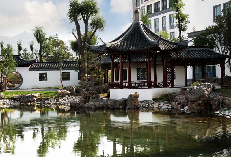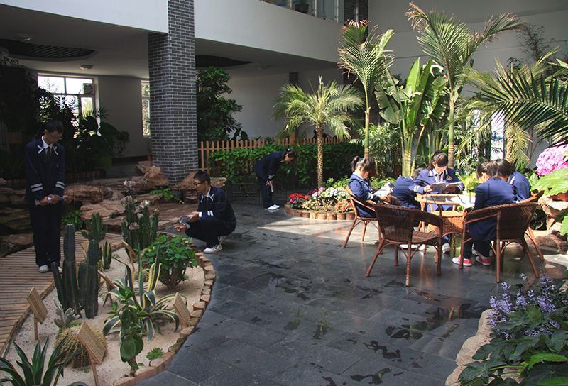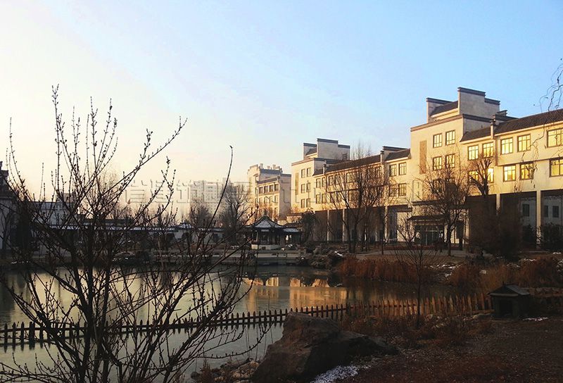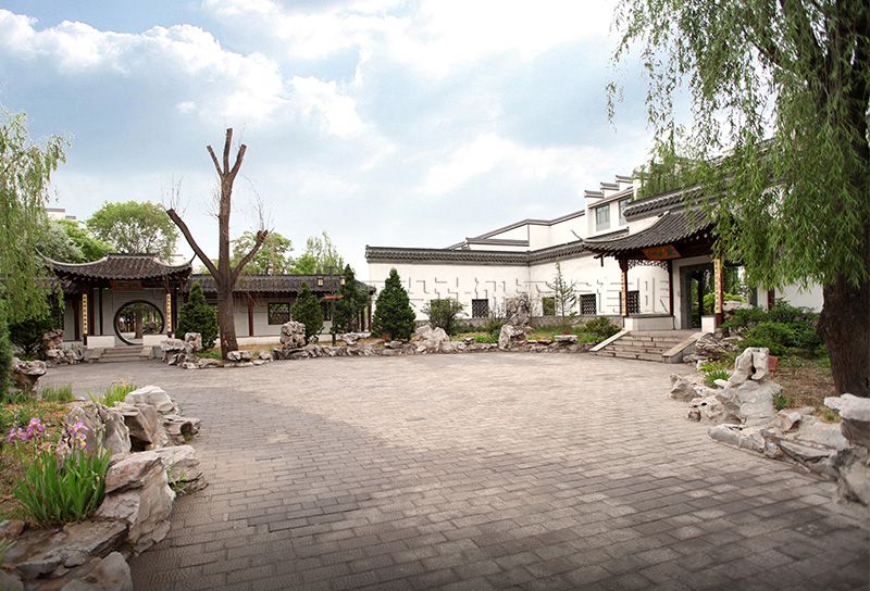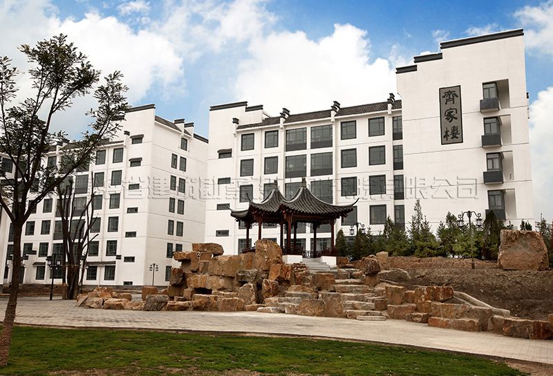 校區(qū)主入口設(shè)在南端,人流出入口寬24米,車流設(shè)9米寬獨(dú)立出入口,遠(yuǎn)離城市主干道,通過校區(qū)主要入口進(jìn)入校前廣場,辦公區(qū)布置在廣場東側(cè)靠規(guī)劃路,教學(xué)區(qū)布置在廣場西側(cè)最安靜區(qū)域,餐廳及宿舍布置在西北角,400米運(yùn)動(dòng)場布置在用地東北角,臨城市主干道。規(guī)劃采用集中緊湊的功能布局結(jié)構(gòu),將教學(xué)、生活及運(yùn)動(dòng)區(qū)用簡潔三角形空間連接,最大限度縮短師生步行距離,并通過大小不同的主題廣場、綠化、湖面將三部分有機(jī)連為一體。在學(xué)校的創(chuàng)作中,建筑師結(jié)合學(xué)校辦學(xué)思想和理念,確認(rèn)以“簡徽”建筑風(fēng)格及“蘇州”園林景觀的設(shè)計(jì)思路,通過對設(shè)計(jì)思路反復(fù)論證、研討、修訂,歷時(shí)一年完成新校建筑設(shè)計(jì)方案及施工圖設(shè)計(jì)。